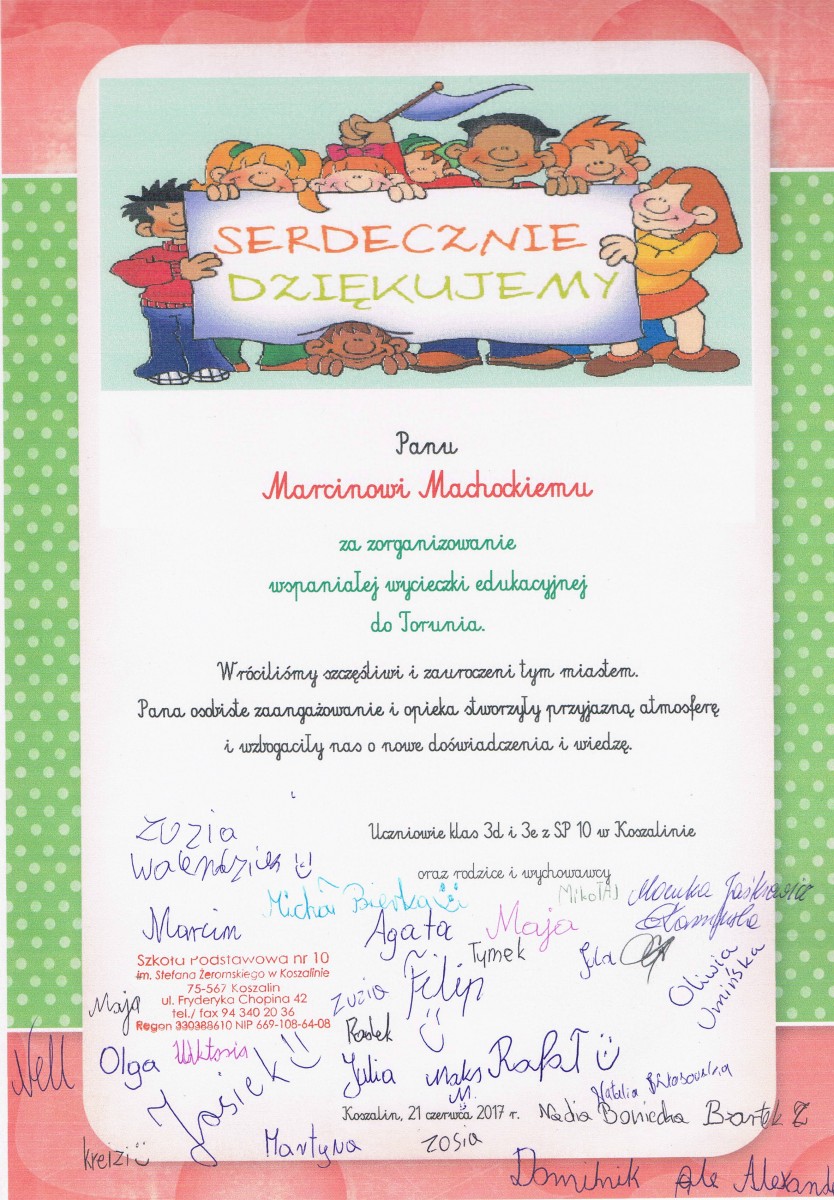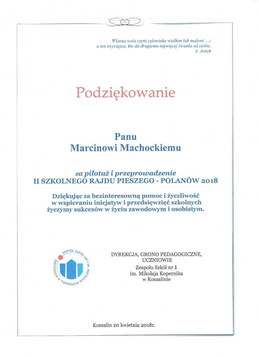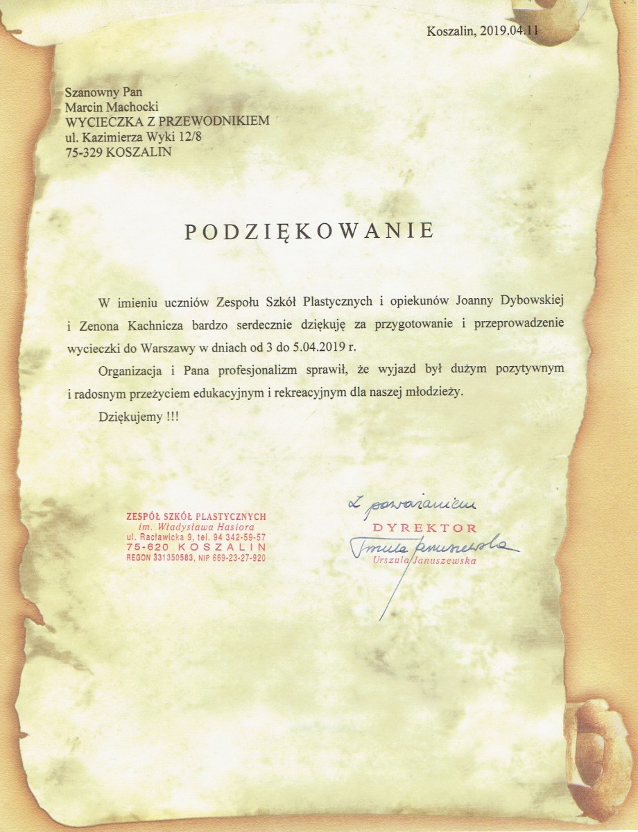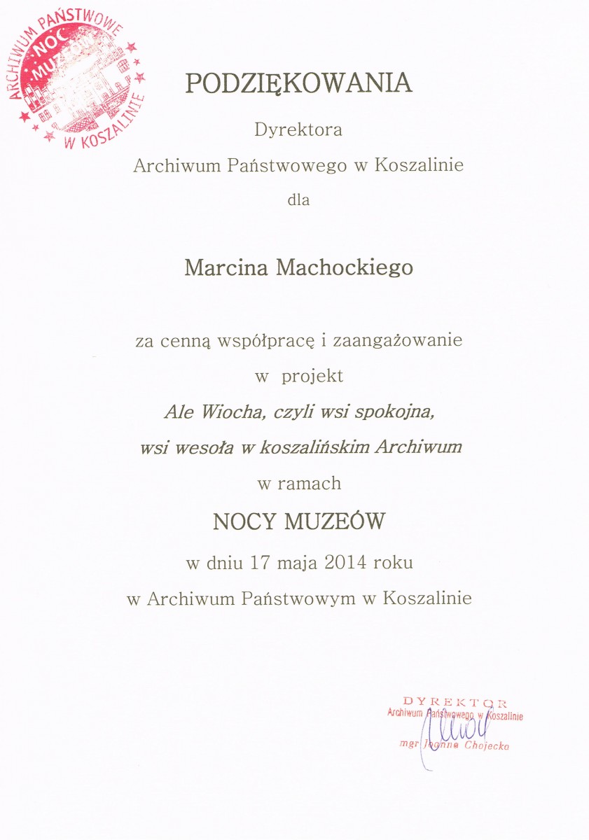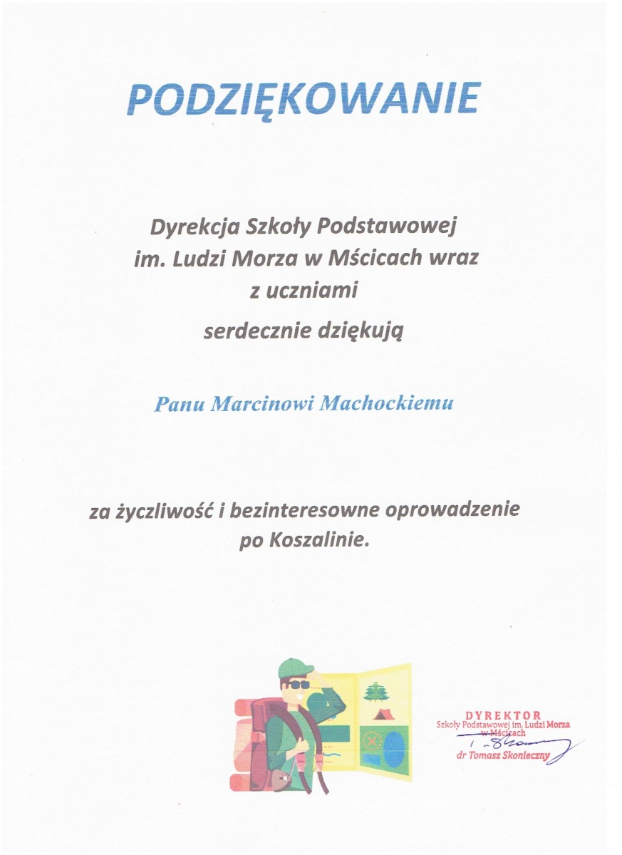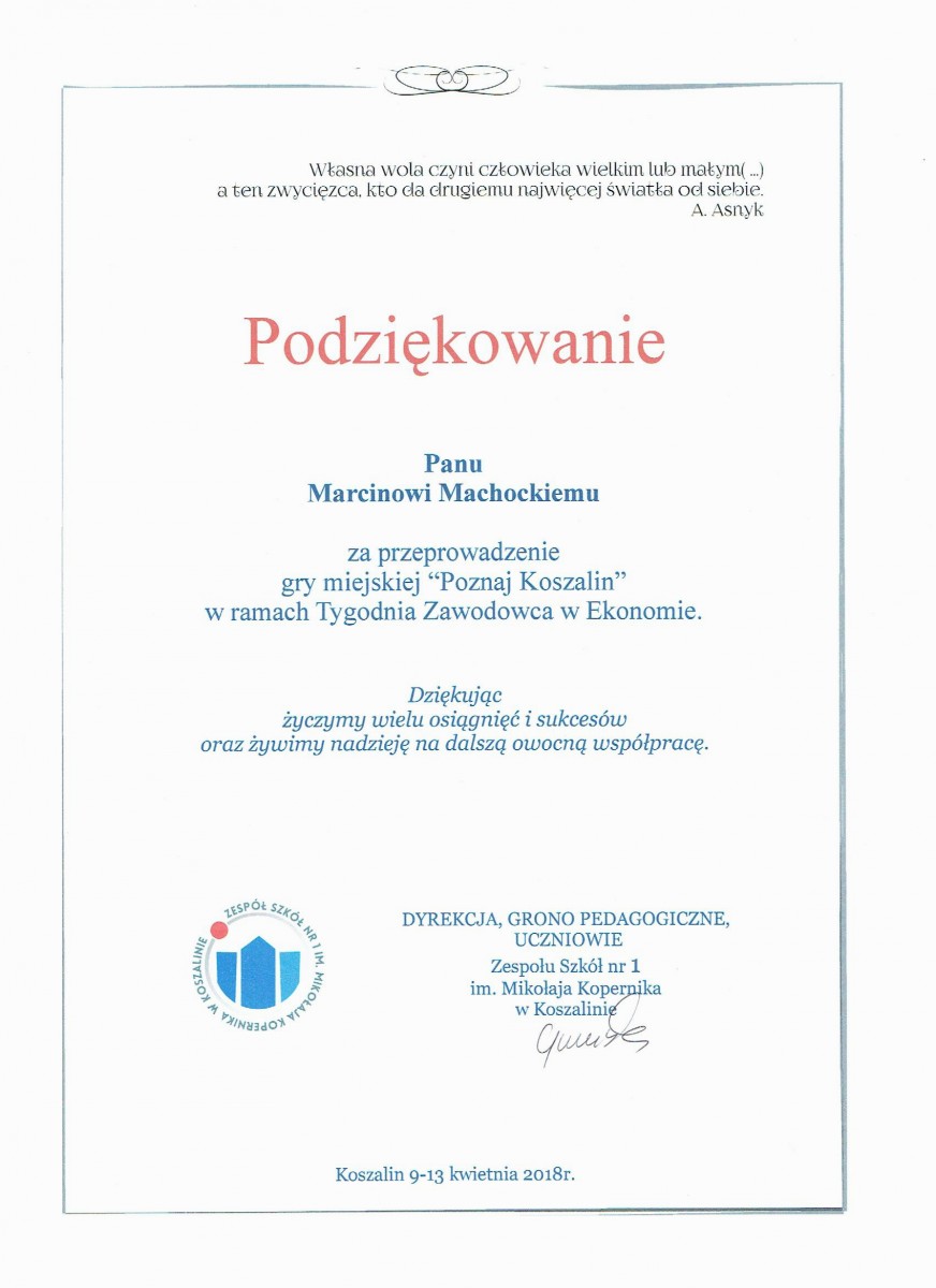 Wycieczka z przewodnikiem Marcin Machocki działa na rynku turystycznym od 2009 roku. Jej właścicielem jest rodowity koszalinianin, Marcin Machocki - licencjonowany przewodnik (uprawnienia przewodnika terenowego - woj. zachodniopomorskie) i pilot wycieczek, który łączy pracę z pasją i swoimi zainteresowaniami. Z branżą turystyczno-hotelarską związany jest już od 2003 roku. Doświadczenie w zarządzaniu zdobywał jako kierownik Ośrodka Rehabilitacyjno-Wypoczynkowego w Sarbinowie Morskim.