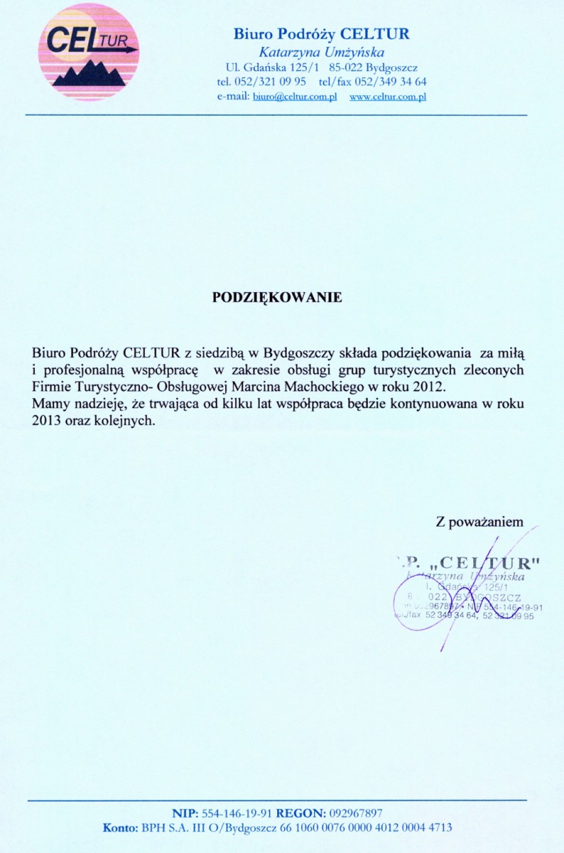 Nasza firma posiada wpis do Rejestru Organizatorów Turystyki i Przedsiębiorców Ułatwiających Nabywanie Powiązanych Usług Turystycznych, prowadzonego przez Marszałka Województwa Zachodniopomorskiego pod numerem 08/12 oraz gwarancję ubezpieczenia turystycznego wydaną przez COMPENSA TU S.A. Vienna Insurance Group