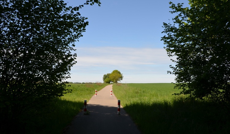 Dzisiejszą trasę można byłoby opisać jednym zdaniem: asfalt, asfalt, asfalt i kościoły. Nie było łatwo bowiem nawierzchnia asfaltowa jest dla mnie najbardziej nielubianym podłożem do maszerowania. Już sama myśl sprawia, że odechciewa mi się iść. Tym razem przełamałem się i zaplanowałem trasę w pobliżu Gościna. Pojechałem z rana do tego niewielkiego, jednego z najmłodszych miast (prawa miejskie zostały przyznane w 2011 roku) w województwie zachodniopomorskim. Samochód zaparkowałem przy obwodnicy – przynajmniej tak jest nazywana ta droga, która mija miasto.